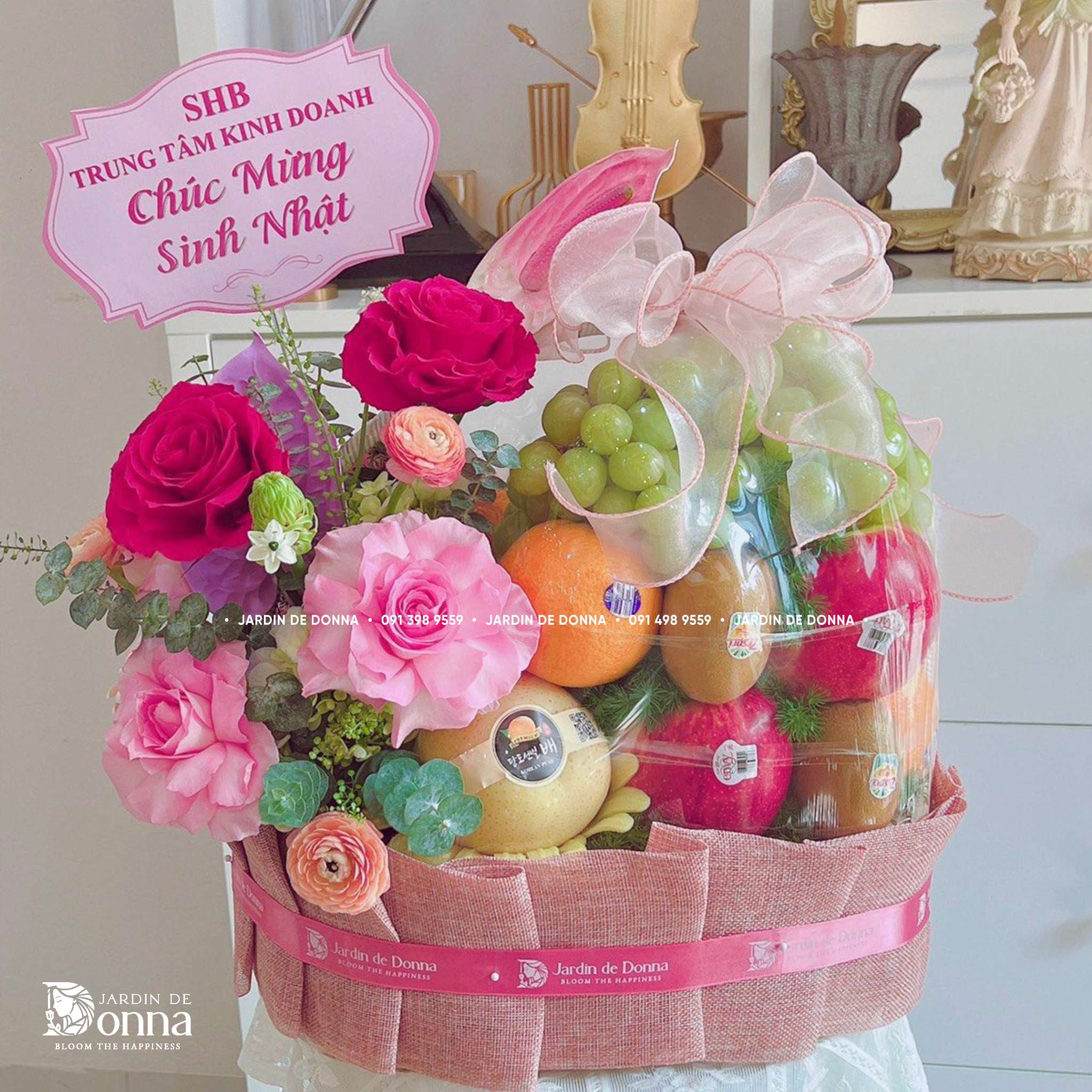 Lưu ý: Sản phẩm lẵng/giỏ hoa quả mẫu chỉ mang tính chất tham khảo. Bởi vì: một số loại hoa trong mẫu theo mùa sẽ không có hoặc chất lượng không đảm bảo, do đó chúng tôi sẽ dùng các loại hoa khác thay thế. Nhưng Jardin de Donna đảm bảo định lượng, tone màu, kiểu dáng cũng như chất lượng hoa tươi đẹp và đầy đặn nhất. Bạn sẽ nhận được ảnh hoàn thiện trước khi chúng tôi giao hoa.